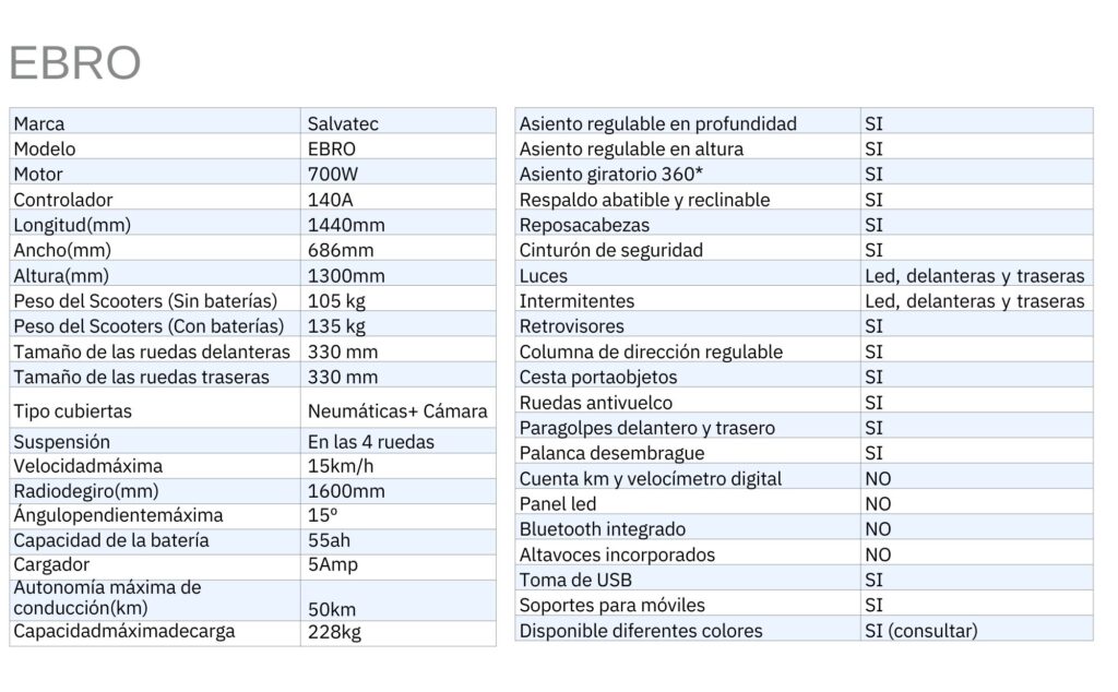 • Comodidad y facilidad de uso: Su diseño ergonómico y su operación intuitiva hacen que el Scooter Eléctrico Ebro sea fácil de manejar, proporcionando una experiencia de conducción placentera tanto para principiantes como para usuarios experimentados.